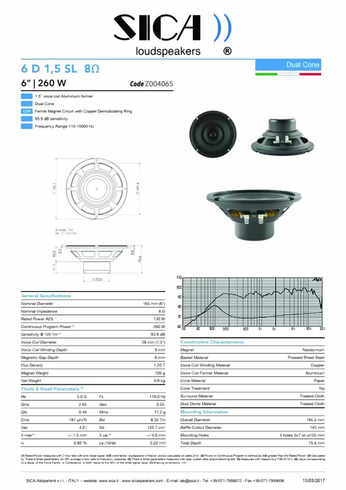 Sica 6D 1,5 SL 8 Neodym Spitzenklasse 165er Breitbänder, neu/ungebraucht Fullrange in kleinen Back-Loaded-Horn oder als leistungsfähiger Mid-High-Driver